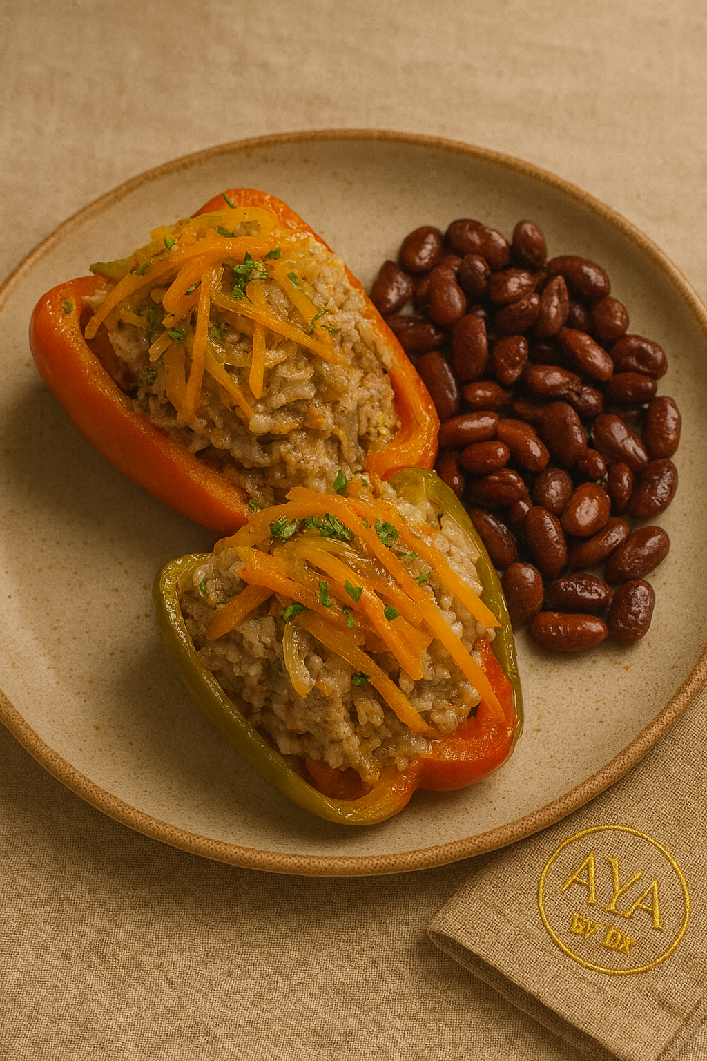 Mama's Signature Stuffed Peppers with Garnish & Sauce