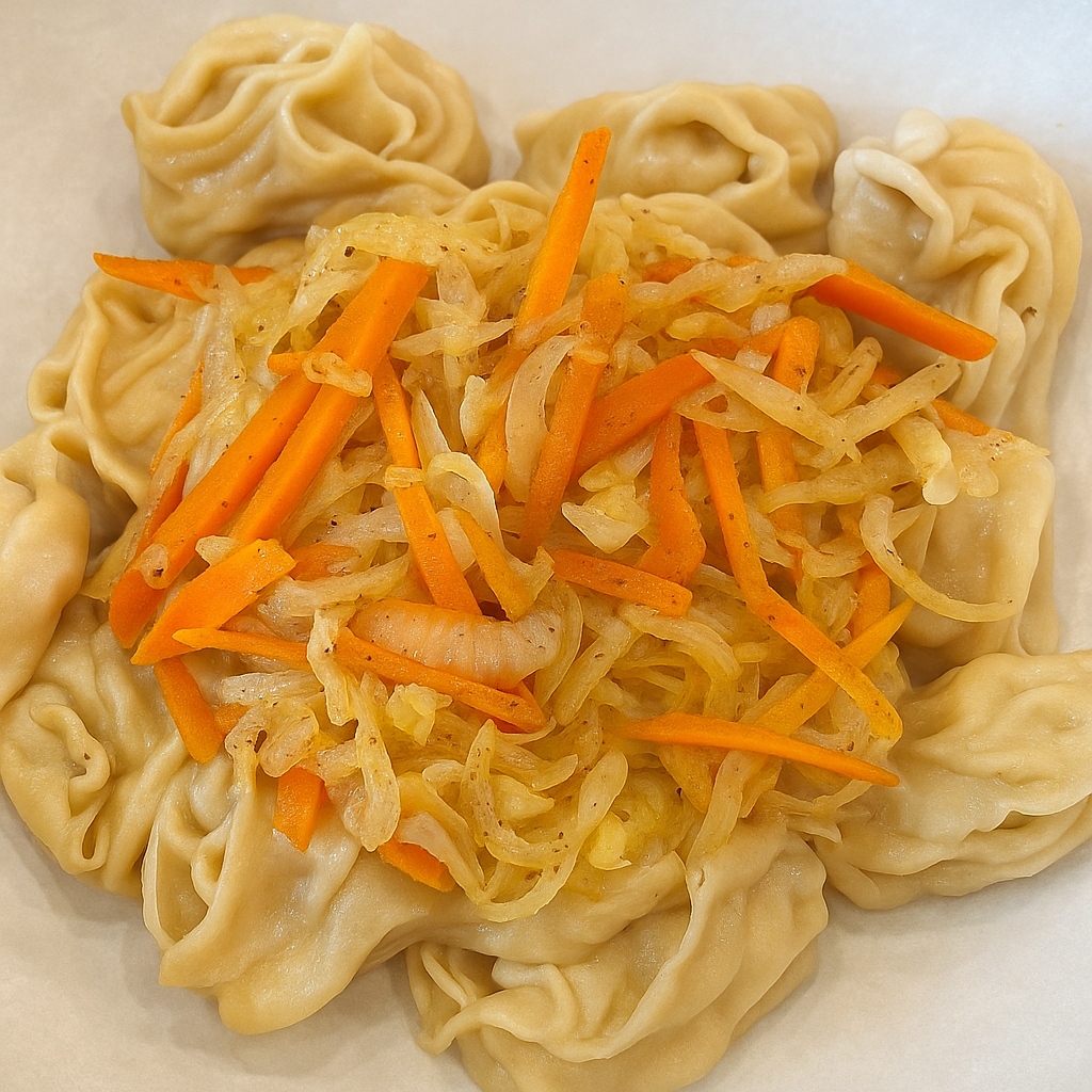 Handmade steamed dumplings filled with a comforting mix of potatoes, onion, and gentle spices. Light, soft, and full of homemade warmth -Each manti is wrapped by hand and gently steamed for that soft, melt-in-your-mouth texture. Served with a light yogurt-garlic, herb sauce & ketchup.