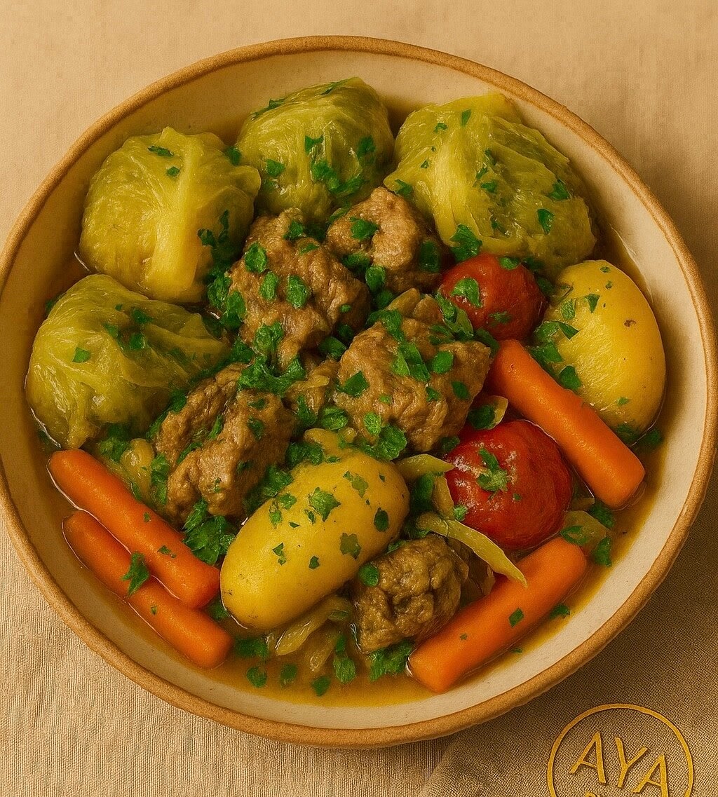 A nourishing layered stew of beef, cabbage, potato, carrot, bell pepper, and onion, gently slow-cooked with herbs and spices for deep, natural flavor. Simple, soulful, and handmade with love - just the way mama makes it.